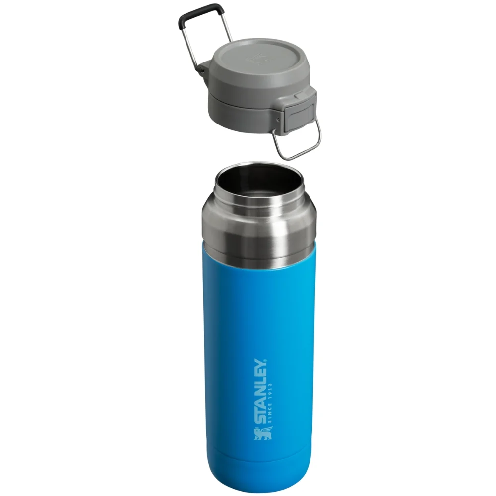 بطری Stanley Go Quick Flip Water Bottle 1.06 L با فناوری عایق دو‌جداره اجازه می‌دهد نوشیدنی‌های گرم تا ۱۰ ساعت، سرد تا ۱۸ ساعت و یخ تا ۲.۵ روز باقی بمانند. درب Quick-Flip با فشار یک دکمه باز و بسته می‌شود و کاملاً ضد نشت است. از استیل ۱۸/۸ بدون BPA ساخته شده، قابل استفاده در ماشین ظرفشویی است و طراحی جمع‌وجورش جای بین‌لیوانی ماشین و کیف را اشغال نمی‌کند.