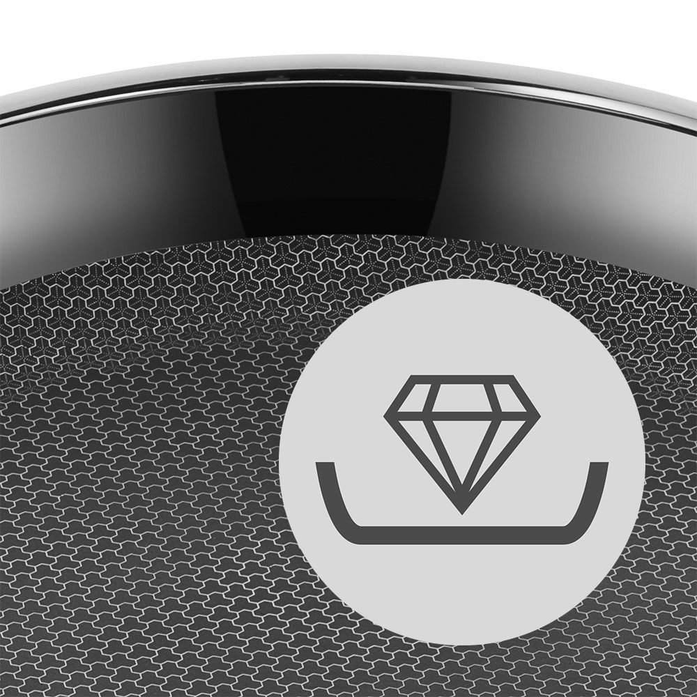 سطح شش‌ضلعی (Honeycomb) تابه باعث می‌شود مواد غذایی کمتر بچسبند و در عین حال، مقاومت بالایی در برابر خش و استفاده مداوم داشته باشد. دسته ارگونومیک آن مانع از انتقال حرارت به دست شده و راحتی کار هنگام آشپزی را تضمین می‌کند.